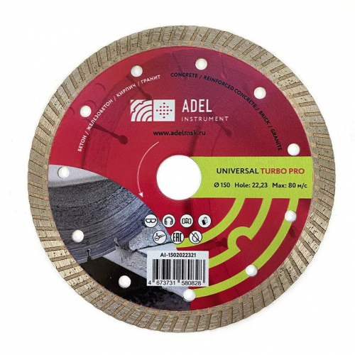 Диск алмазный TurboPro 150мм по бетону. Универсальный отрезной алмазный диск Adel Instrument Universal Turbo Pro 150 мм - это профессиональная оснастка, которая применяется в при выполнении различных видов строительных и ремонтных работ.