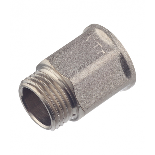 Предназначен для удлинения резьбового соединения на 25 мм. С одной стороны имеет внутреннюю резьбу 1/2" (16 мм), с другой стороны наружную 1/2" (16 мм). Резьба – внутренняя/наружная, цилиндрическая трубная по ГОСТу 6357 (ISO 228, EN 10226), совместимая также с наружной конической трубной резьбой по ГОСТу 6211 (ISO R7)