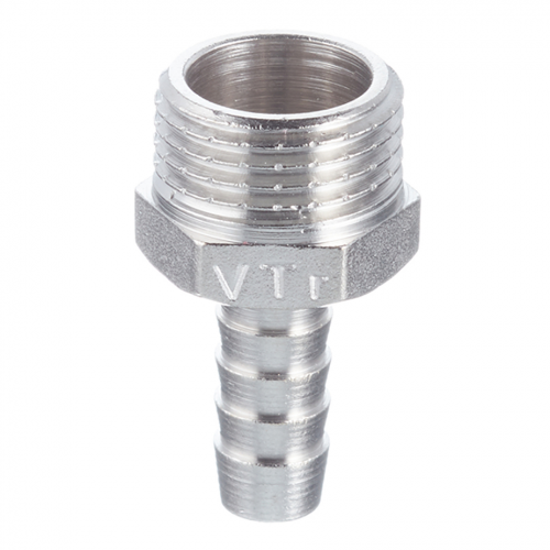 Предназначен для подключения к водозапорной арматуре, непосредственно к трубопроводам поливочного шланга. Изделие можно применять также в других системах с неагрессивной к используемым материалам рабочей средой (горячая вода, незамерзающий теплоноситель, сжатый воздух и т.д.). Фитинг выполнен из сантехнической латуни CW617N, защищенной никелевым гальванопокрытием. Присоединительный патрубок снабжен цилиндрической трубной наружной резьбой с насечками для лучшего удержания герметика. Штуцер для шланга имеет конфигурацию, эффективную для его фиксации. Присоединение шлангов необходимо производить с помощью плоских обжимных хомутов.