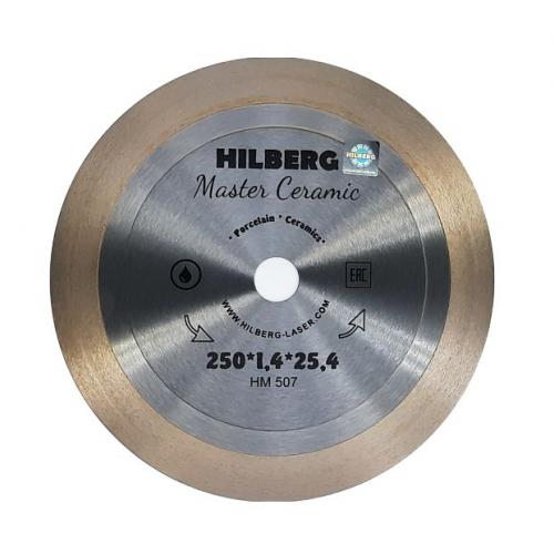 Алмазный диск Hilberg Master Ceramic 250 мм - изготовлен методом горячего прессования. Используется для резки керамогранита, твердой керамики, керамики. Толщина режущей кромки 1,4 мм, а высота 25 мм. Посадочное отверстие - 25,4 мм. Резка осуществляется с применением водяного охлаждения. Сплошная режущая кромка обеспечивает гладкий ровный рез без сколов. Диск подходит для работы на плиткорезах.
