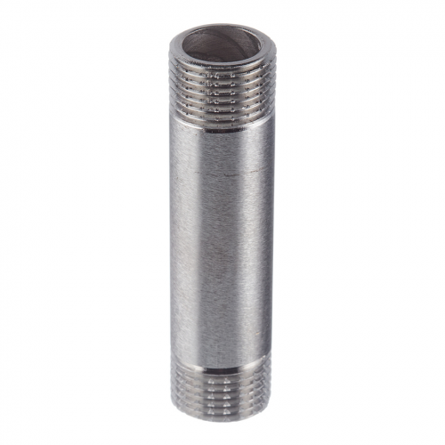 Резьба двухсторонняя наружная трубная цилиндрическая по ГОСТу 6357 (ISO 228, EN 10226). Длина 80 мм, диаметр – 1/2". Материал – никилерованная латунь.