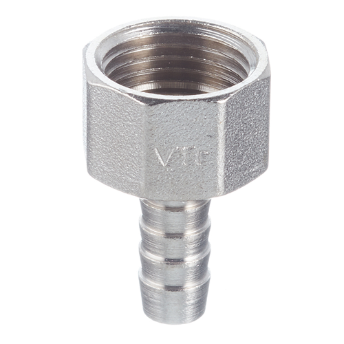 Предназначен для подключения к водозапорной арматуре, непосредственно к трубопроводам поливочного шланга. Изделие можно применять также в других системах с неагрессивной к используемым материалам рабочей средой (горячая вода, незамерзающий теплоноситель, сжатый воздух и т.д.). Фитинг выполнен из сантехнической латуни CW617N, защищенной никелевым гальванопокрытием. Присоединительный патрубок снабжен цилиндрической трубной наружной резьбой с насечками для лучшего удержания герметика. Штуцер для шланга имеет конфигурацию, эффективную для его фиксации. Присоединение шлангов необходимо производить с помощью плоских обжимных хомутов.