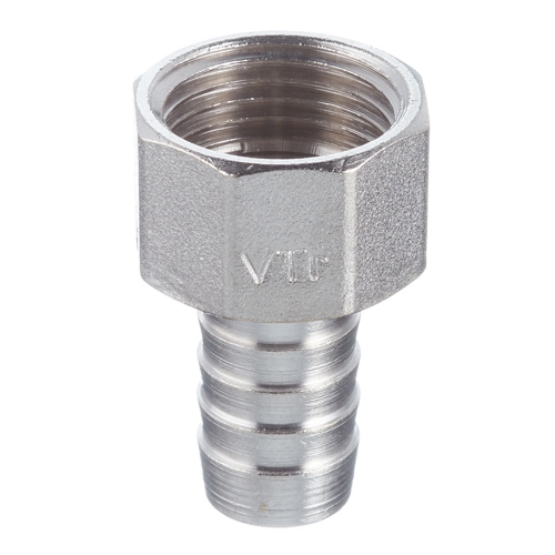 Предназначен для подключения к водозапорной арматуре, непосредственно к трубопроводам поливочного шланга. Изделие можно применять также в других системах с неагрессивной к используемым материалам рабочей средой (горячая вода, незамерзающий теплоноситель, сжатый воздух и т.д.). Фитинг выполнен из сантехнической латуни CW617N, защищенной никелевым гальванопокрытием. Присоединительный патрубок снабжен цилиндрической трубной наружной резьбой с насечками для лучшего удержания герметика. Штуцер для шланга имеет конфигурацию, эффективную для его фиксации. Присоединение шлангов необходимо производить с помощью плоских обжимных хомутов.