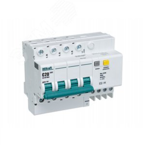 Автомат дифференциальный Dekraft 20А 30мА 3P+N тип AC 4.5 кА 15021DEK