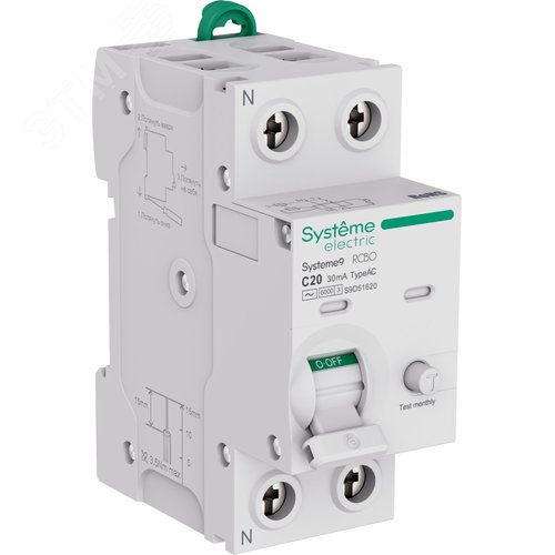 Автомат дифференциальный Systeme9 1P+N C 20A 6kA 30мА Тип-AC S9D51620