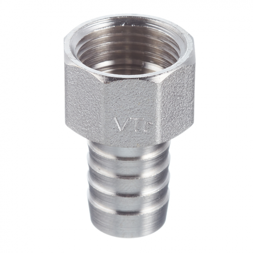 Предназначен для подключения к водозапорной арматуре, непосредственно к трубопроводам поливочного шланга. Изделие можно применять также в других системах с неагрессивной к используемым материалам рабочей средой (горячая вода, незамерзающий теплоноситель, сжатый воздух и т.д.). Фитинг выполнен из сантехнической латуни CW617N, защищенной никелевым гальванопокрытием. Присоединительный патрубок снабжен цилиндрической трубной наружной резьбой с насечками для лучшего удержания герметика. Штуцер для шланга имеет конфигурацию, эффективную для его фиксации. Присоединение шлангов необходимо производить с помощью плоских обжимных хомутов.
