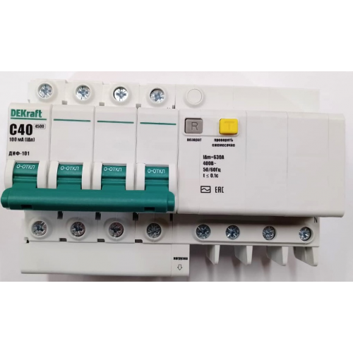 Автомат дифференциальный Dekraft 40А 100мА 3P+N тип AC 4.5кА 15033DEK