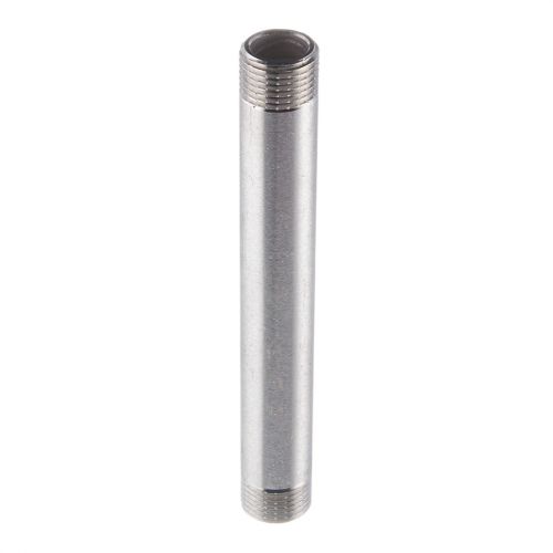 Резьба двухсторонняя наружная трубная цилиндрическая по ГОСТу 6357 (ISO 228, EN 10226). Длина 150 мм, диаметр – 1/2". Материал – никилерованная латунь.