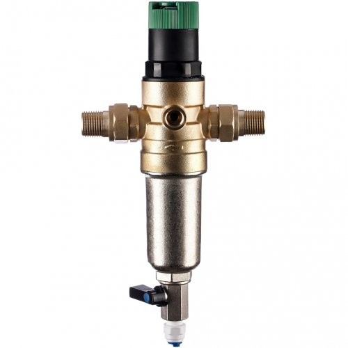Фильтр самопромывной Гейзер Бастион 1/2 для горячей воды, с регулятором давления, d52,5