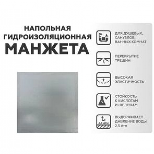 Манжета гидроизоляционная напольная применяется для эластичной гидроизоляции канализационных сливов, трапов, скиммеров, мест выхода труб во влажных помещениях (душевых, санузлах, ванных комнатах и т.д.).