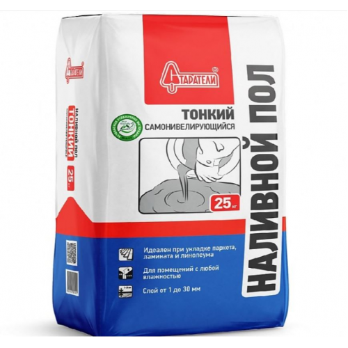 Состав: комплексное минеральное связующее, наполнители и полимерные добавки крупнейших мировых производителей. Область применения Тонкий наливной пол Старатели служит для высококачественного выравнивания поверхностей полов внутри жилых и административных помещений с любой влажностью под последующие покрытия. Основанием для Тонкого наливного пола могут выступать бетон, железобетон, черновая цементная стяжка, слой Толстого наливного пола Старатели (в качестве стяжки). В качестве последующего покрытия можно использовать напольную плитку, природный камень, ламинат, штучный паркет, линолеум, ковровое покрытие. Наливной пол Старатели также подходит для системы "Теплый пол". Затвердевший раствор обладает высокой трещиностойкостью, безусадочностью и прочностью. Допускает хождение по залитому полу через 4-6 часов. Значительно сокращает время проведения ремонтных работ.