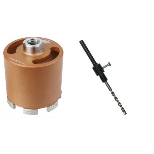 Сверло алмазное для подрозетников DH-D400 (82/65 мм; M16; 7 сегментов) Адель применяется для сверления отверстий без подачи воды на оборудование оснащённом системой микроудара. Система Diamond Hit позволяет сверлить отверстия в бетоне, кирпиче, высоко армированном бетоне с высокой скоростью прохода.
