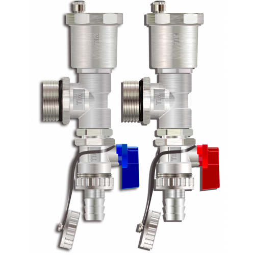 Тройник концевой в сборе представляет собой готовое решение для завершения подающего и обратного контура коллекторной группы. Воздухоотводчик автоматически отведет воздух и газ из системы. Дренажный кран позволяет заполнять или сливать теплоноситель системы.