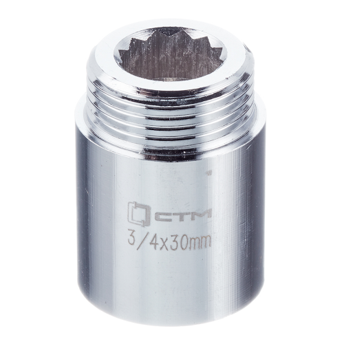 Предназначен для удлинения резьбового соединения на 30 мм. С одной стороны имеет внутреннюю резьбу 3/4" (20 мм), с другой стороны наружную 3/4" (20 мм).