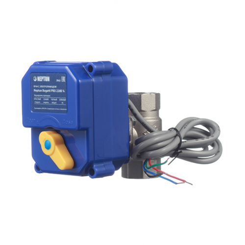 Кран шаровой с электроприводом латунный Neptun Bugatti Pro (NEPBugPro220-34) 3/4 ВР(г) х 3/4 ВР(г) мини прямой 220 В