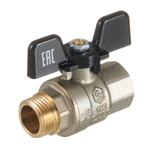 Кран шаровой латунный Stout SVB 1/2 ВР(г) х 1/2 НР(ш) полнопроходной бабочка прямой (SVB-0004-200015)