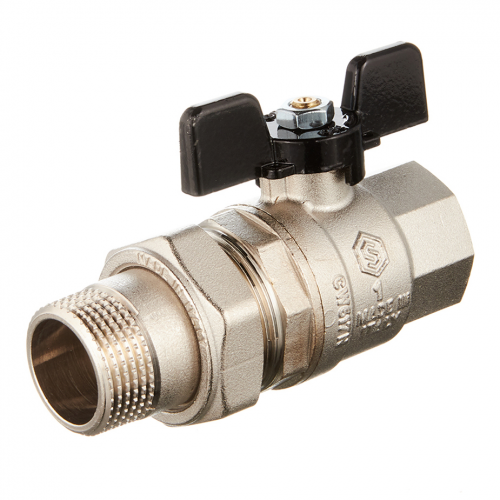 Кран шаровой латунный 1 ВР(г) х 1 НР(ш) бабочка со сгоном прямой
