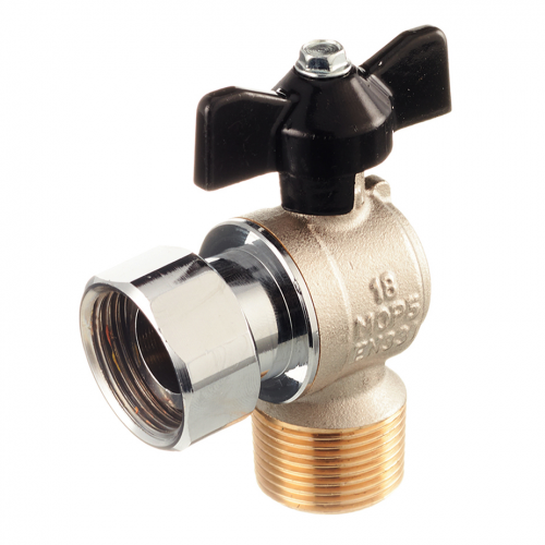 Кран шаровой Stout (SVB-0010-000020) 3/4 НР(ш) х 3/4 НР(ш) бабочка с накидной гайкой угловой