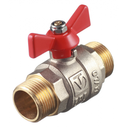 Предназначен для полного открытия или закрытия потока воды. Полнопроходной ремонтопригодный шаровой кран с увеличенным ресурсом. Корпус – латунный, никелированный. Оснащен ручкой типа «бабочка» с утолщенной стенкой из алюминиевого сплава и эпоксидной покраской. Резьба присоединений – наружная/наружная.