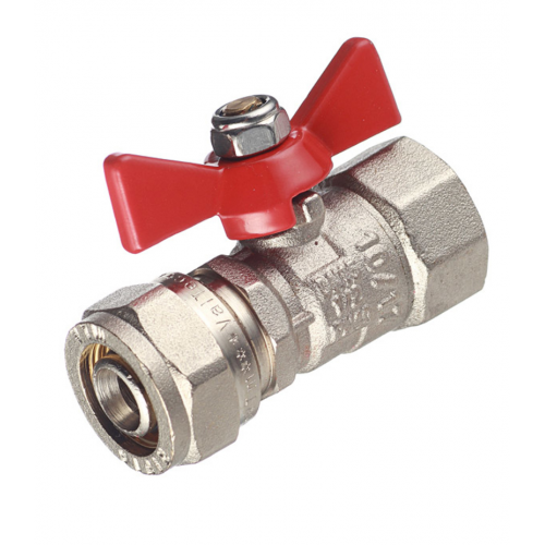 Кран шаровой латунный Valtec (VT.342.N.1604) 16 обж(ц) х 1/2 ВР(г) для металлопластиковых труб бабочка прямой