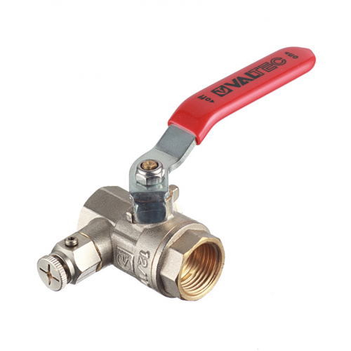 Кран шаровой латунный Valtec Base (VT.245.N.04) 1/2 ВР(г) х 1/2 ВР(г) ручка с дренажом и воздухоотводчиком прямой