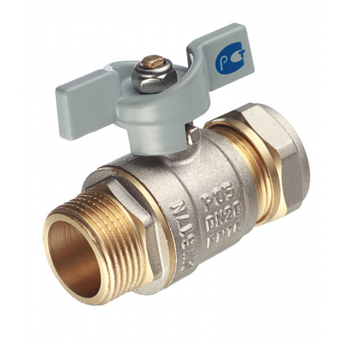 Кран шаровой латунный 20 обж(ц) х 3/4 НР(ш) для металлопластиковых труб бабочка прямой