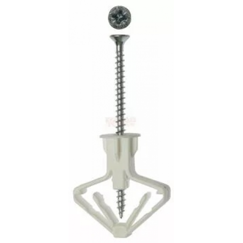 Дюбель полипропиленовый тип Бабочка для пустотелых конструкций с оцинкованным саморезом, 10x50 мм