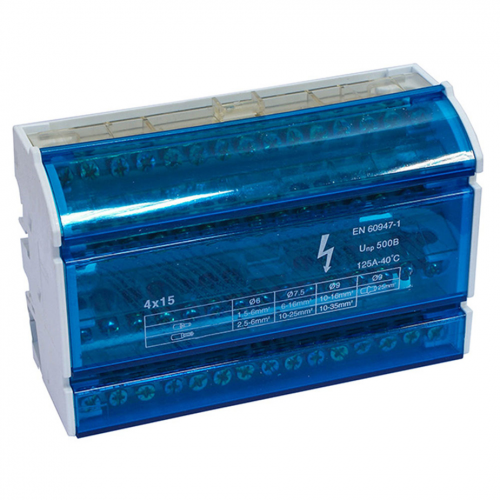 Шина нулевая на DIN-изоляторе DORI 4х15 отверстий в корпусе