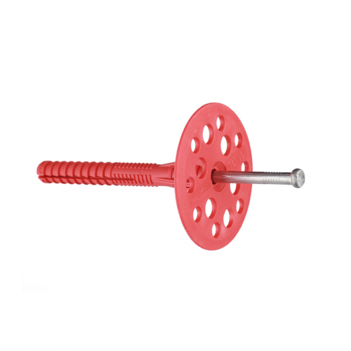 Предназначен для крепления теплоизоляционных изделий толщиной к внутренним и наружным поверхностям зданий, различного назначения, в том числе в системах вентилируемых фасадов и колодезной кладке, в такие основания, как тяжелый и легкий бетон, полнотелый керамический и силикатный кирпич, керамзитобетонный блок. За счет широкой шляпки дюбель часто называют "парашют" или тарельчатый дюбель. Конструкция широкой шляпки дюбеля плотно прижимает теплоизоляцию, отверстия позволяют утопить дюбель в клее без потери эластичности шляпки. В комплекте с дюбелем поставляется металлический оцинкованный гвоздь.
