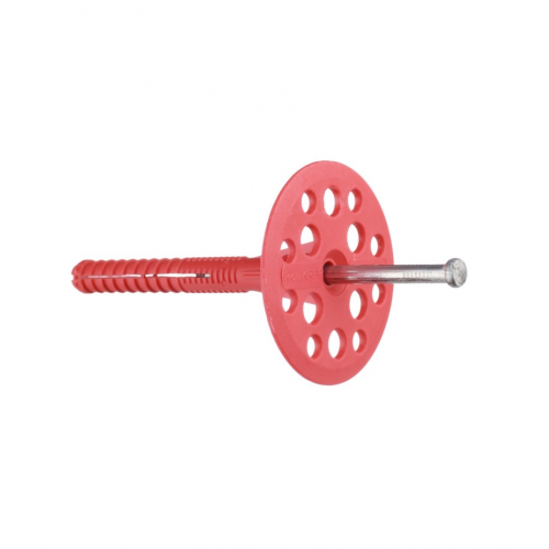 Предназначен для крепления теплоизоляционных изделий толщиной к внутренним и наружным поверхностям зданий, различного назначения, в том числе в системах вентилируемых фасадов и колодезной кладке, в такие основания, как тяжелый и легкий бетон, полнотелый керамический и силикатный кирпич, керамзитобетонный блок. За счет широкой шляпки дюбель часто называют "парашют" или тарельчатый дюбель. Конструкция широкой шляпки дюбеля плотно прижимает теплоизоляцию, отверстия позволяют утопить дюбель в клее без потери эластичности шляпки. В комплекте с дюбелем поставляется металлический оцинкованный гвоздь.