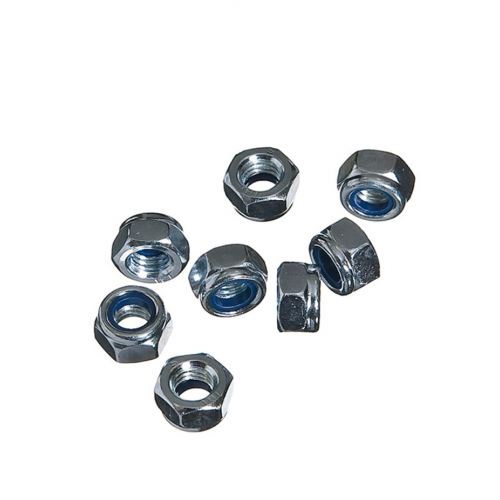 Предназначены для создания разъемного соединения деталей и конструкций в сочетании с болтами соответствующего диаметра. Имеют шестигранную форму (под гаечный ключ) с отверстием, в котором нарезана резьба. Нейлоновая вставка в гайке предотвращает самопроизвольное откручивание и обеспечивает герметичность резьбы. Цинковое покрытие защищает от коррозии.