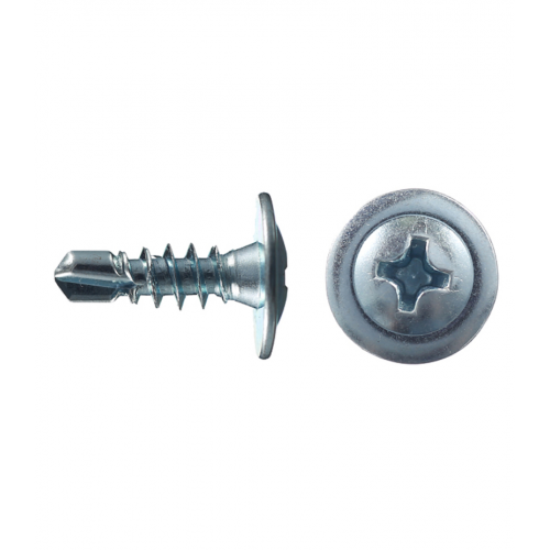 Предназначены для крепления различных металлических элементов толщиной до 2 мм между собой и к несущей поверхности без предварительного сверления. Саморезы имеют полусферическую головку с прессшайбой и крестообразным шлицем PH2, резьбу с мелким шагом и наконечник в виде бура. Производятся из оцинкованной стали. Саморезы имеют полную резьбу.