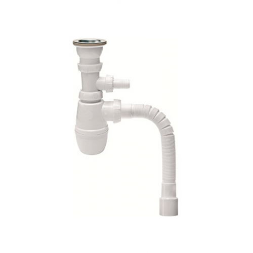 Сифон для мойки WIRQUIN PRO 30718030 1 1/2"х40 мм с выпуском D 70 мм с отводом и гибким соединением 40/50