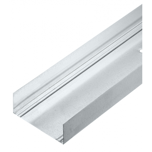 Предназначен для использования в качестве направляющей основы для стоечных профилей, а также для устройства перемычек между ними в каркасах перегородок при устройстве дверных проемов. Монтируется в паре со стоечным профилем 100х50. Изготовлен из оцинкованной металлической ленты толщиной 0,60 мм методом холодного проката.