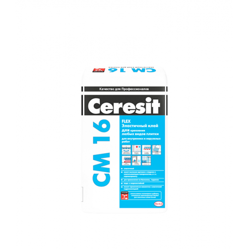 Клей CM 16 предназначен для крепления всех видов минеральных плиток – керамических, керамогранитных, клинкерных, из природного камня (кроме мрамора) размером до 120х120 см, на стенах и полах внутри и снаружи зданий, на таких основаниях как бетон, цементные и цементно-известковые штукатурки, цементные стяжки, легкий и ячеистый бетон, гидроизоляционные покрытия из материа-лов CR 65, CR 166 и CL 51. Применяется на цоколях, парапетах, входных группах, полах балконов и террас, фасадах, эксплуатируемых кровлях, в крытых бассейнах и резервуарах и т. д. При внутренних работах может применяться на таких основаниях как стяжки с подогревом, гипсовые и ангидритные основания, существующие плиточные облицовки, ДСП, OSB, гипсокартонные и гипсоволокнистые листы.