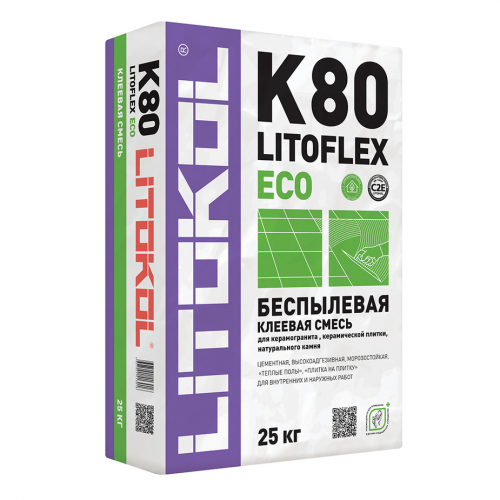 Клей для плитки/ керамогранита/ камня Litokol LitoFlex К80 ECO беспылевой серый класс С2 Е 25 кг