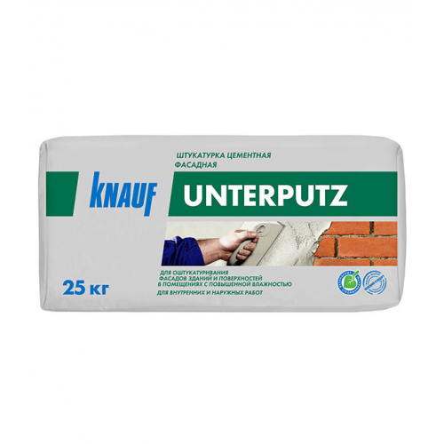 КНАУФ-Унтерпутц – сухая штукатурная смесь на основе цемента с фракционированным песком и специальными добавками. Применяется при наружных и внутренних работах. Предназначена для оштукатуривания фасадов зданий, поверхностей в помещениях с повышенной влажностью (подвалы, гаражи и т. п.), для выравнивания минеральных оснований (керамический или силикатный кирпич, керамзитовые, газосиликатные, газобетонные блоки, бетон, и.др.) под облицовку плиткой и природным камнем весом не более 30 кг/м (вместе с клеем) или декоративную штукатурку, например, КНАУФ-Диамант. Может наноситься вручную или с помощью штукатурных машин, например, фирмы PFT, оборудованных шнековой парой D6-3.