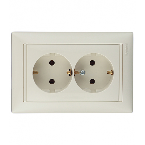 Розетка с рамкой Legrand Valena 695616 двойная скрытая установка слоновая кость с заземлением