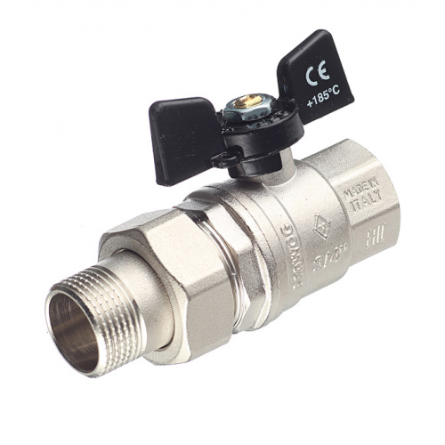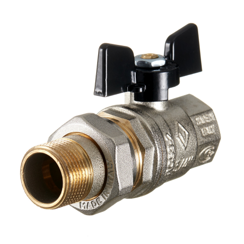 Кран шаровой латунный Bugatti (3220089) 3/4 ВР(г) х 3/4 НР(ш) бабочка с полусгоном прямой