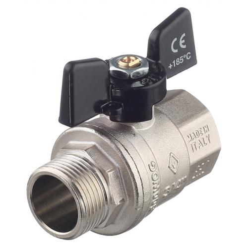 Кран шаровой латунный Bugatti (03070177) 3/4 ВР(г) х 3/4 НР(ш) бабочка прямой