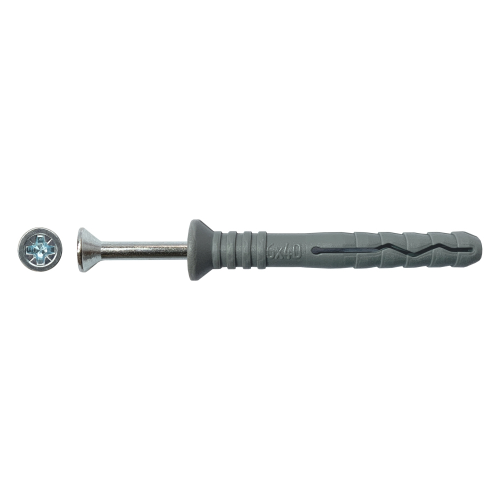 Предназначен для крепления в бетон, керамический полнотелый кирпич, ячеистый бетон, клинкерный кирпич и натуральный камень. Поставляется в комплекте со стальным гвоздеобразный шурупом (крестообразным шлицом), шлиц которого позволяет демонтировать закрепляемую деталь без нарушения внешнего вида крепления.