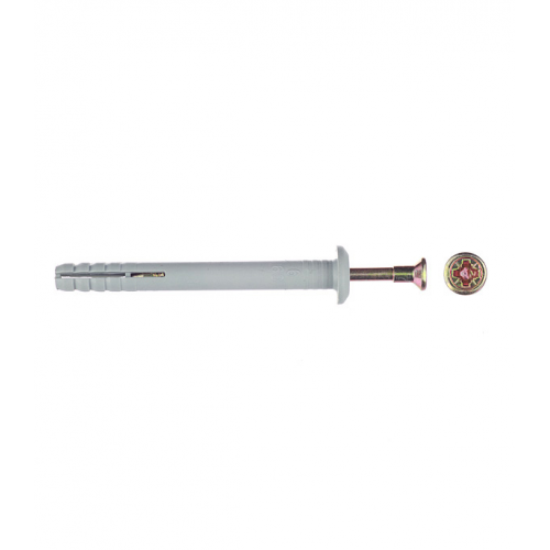 Предназначен для крепления в бетон, керамический полнотелый кирпич, ячеистый бетон, клинкерный кирпич и натуральный камень. Поставляется в комплекте со стальным гвоздеобразный шурупом (крестообразным шлицом), шлиц которого позволяет демонтировать закрепляемую деталь без нарушения внешнего вида крепления.